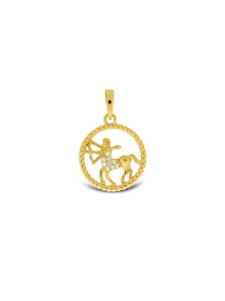 Anheng i sølv Skytten med zirkonia - Forgylt. H: 22 mm B: 15 mm. Kjede selges separat