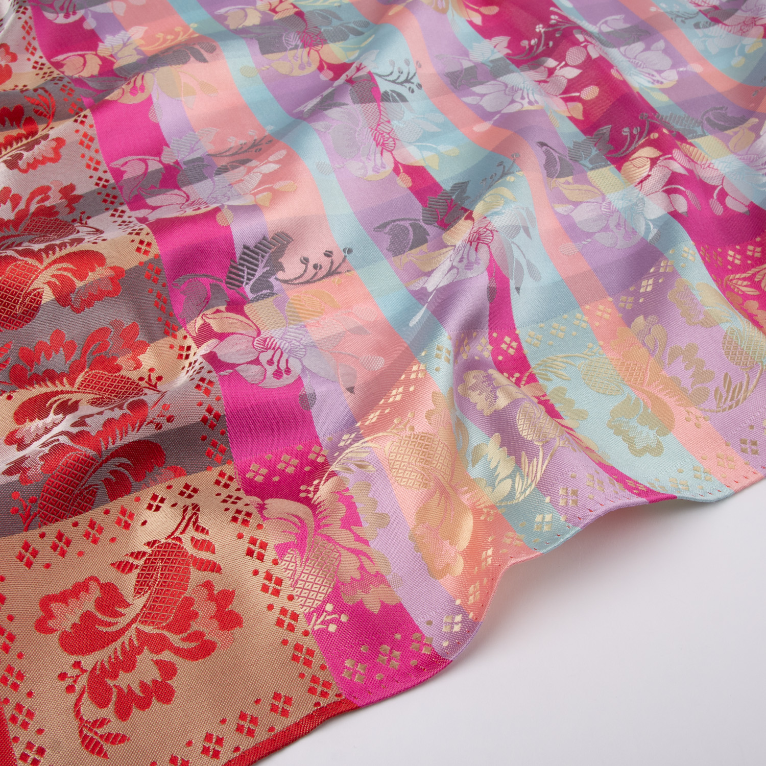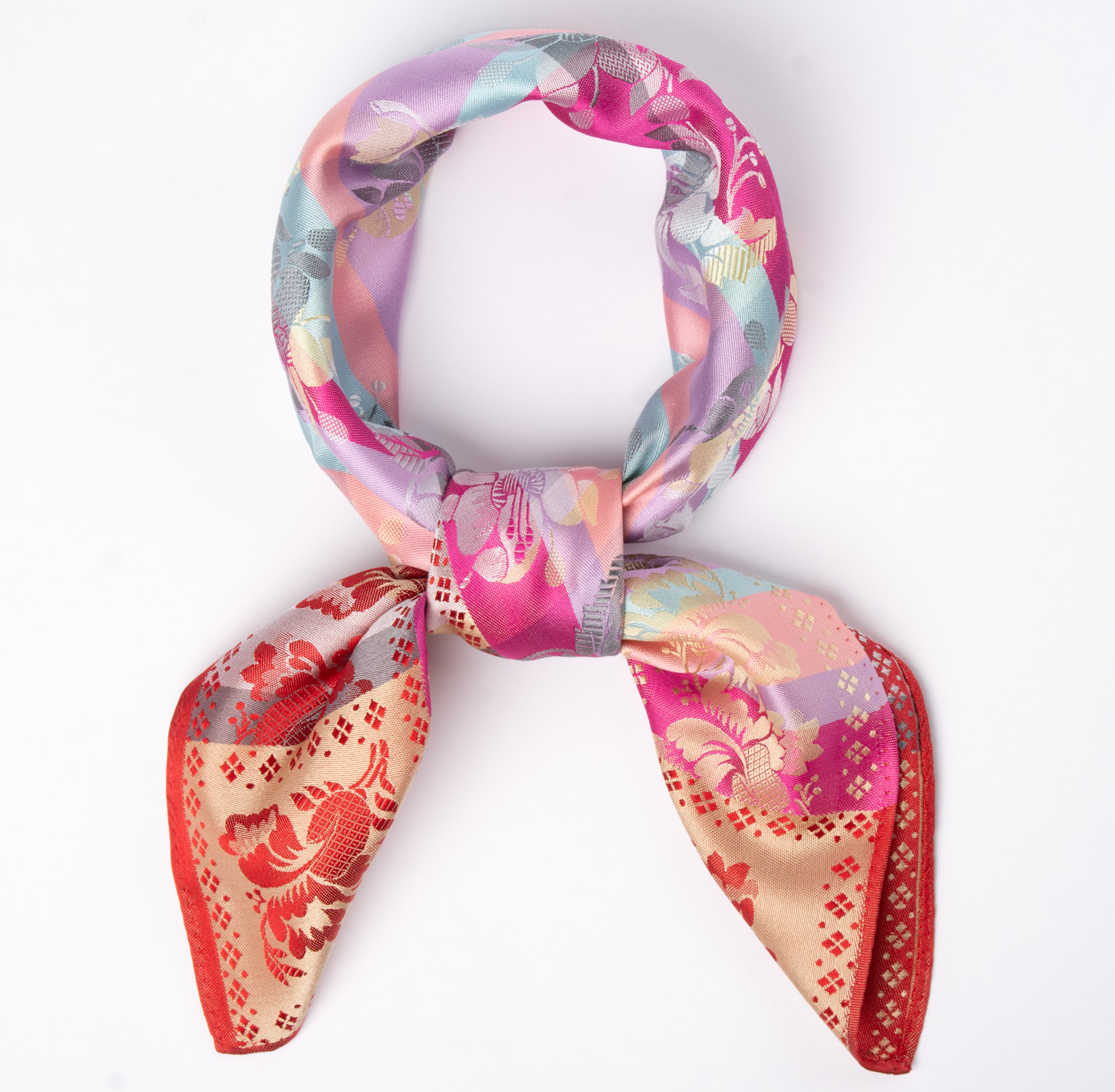 Gabriella silkeskjerf - Turkis, rosa & rød