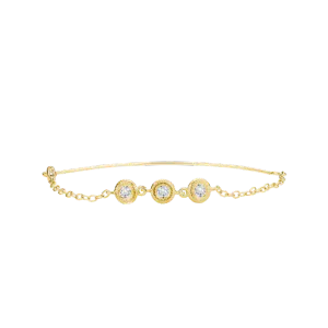 Glory Bow Armbånd i 750 gull med tre diamanter, totalt:0,33 ct. F/G VS2. Den slanke gullbøjlen danner en ren linje over håndleddet, mens den lette konstruktion lar armbåndet følge håndens bevegelser.