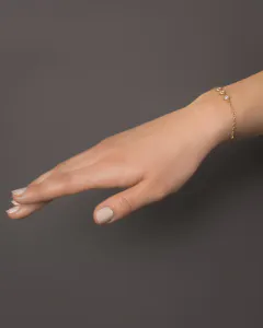 Den buede gullbøjlen balanseres av et fint kjede og lås, som sikrer at armbåndet hviler elegant på håndleddet.