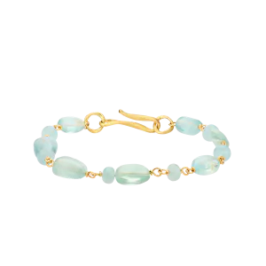 Disse akvamarinene er resultatet av en tiårig kuratering av Marianne Dulong. Hver sten er individuelt utvalgt for sin særlige dybde og naturlige klarhet. Den omhyggelige utvelgelsee gjør armbåndet begrenset i antall.